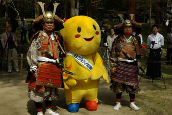 4月9日、恒例の表記射会が川西市の多田神社境内に設けられた特設射場にて行われました。 開会式には川西氏の柴生市長と菅原議長にもご来場いただき、地元開催の国民体育大会弓道競技を盛り上げるべく、鎧武者姿も凛々しくアピールされていました(のじぎく兵庫国体(弓道競技)の公式ページはこちら)。 |